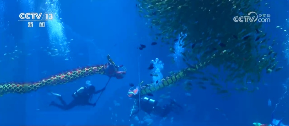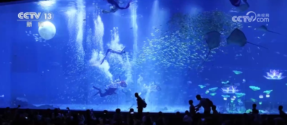 在深圳,当地海洋馆将非遗沙头角鱼灯舞搬进水下,水下表演传递了别样的国潮风情,也让游客有了一份独特的仪式感。
